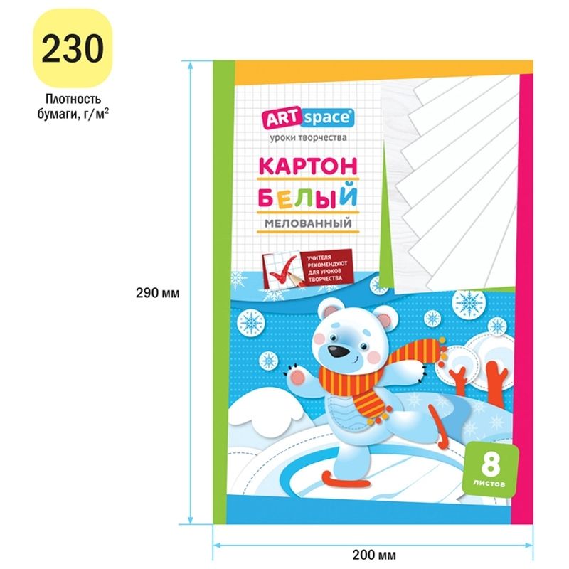 Картон белый ArtSpace мелованный, 8 листов, в папке