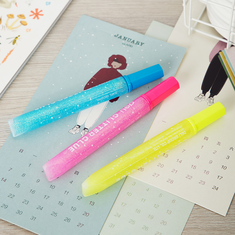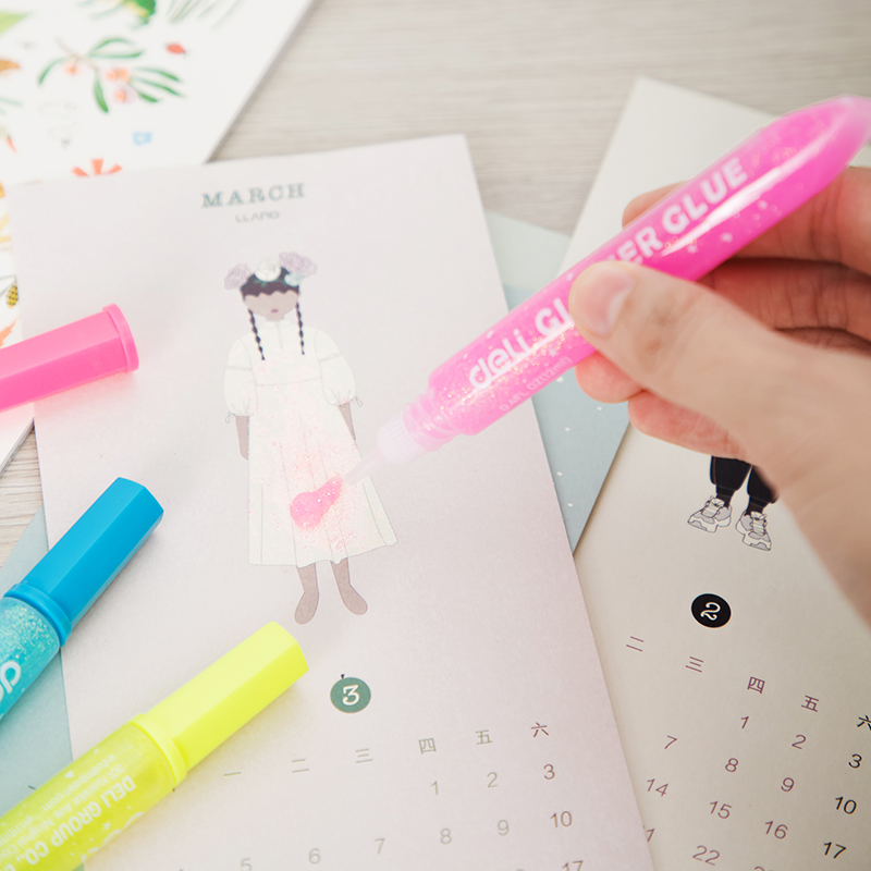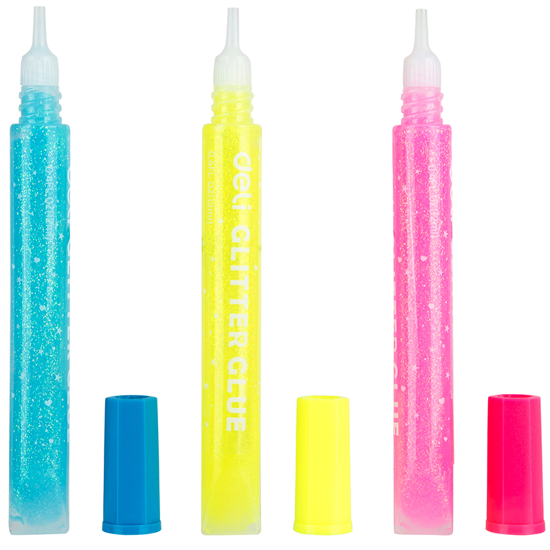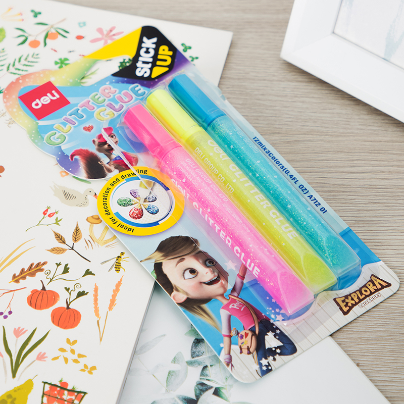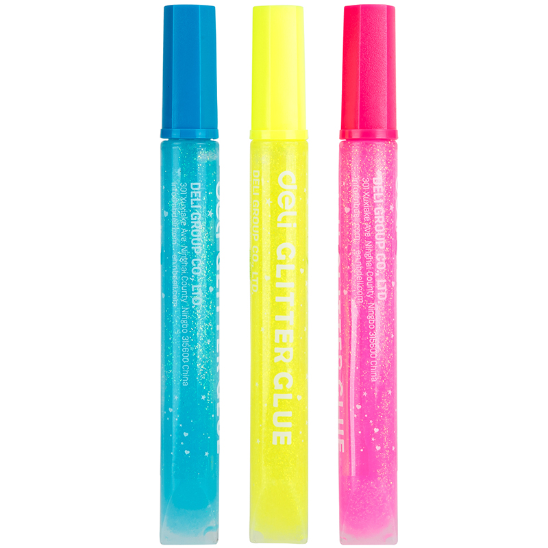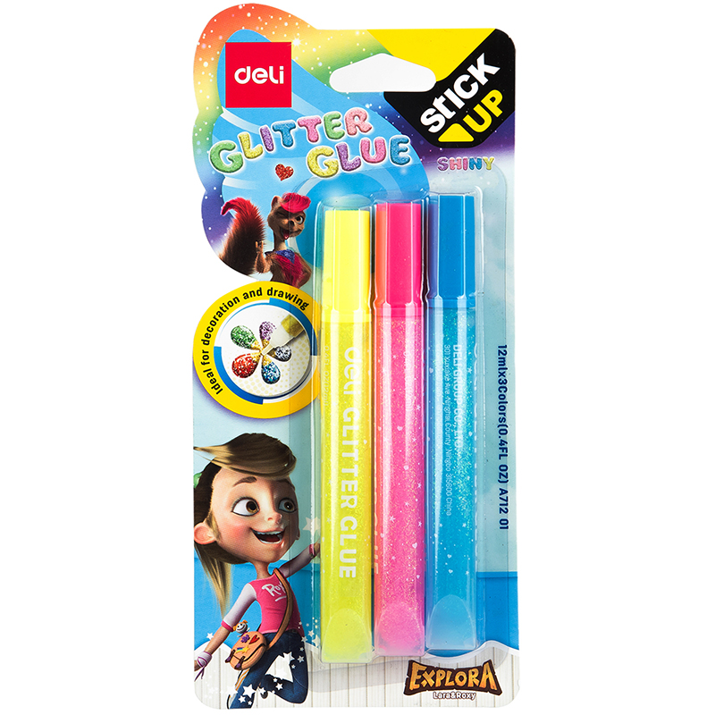 Клей-гель DELI "Explora" с блестками, 3 шт по 12 мл, неон, в блистере