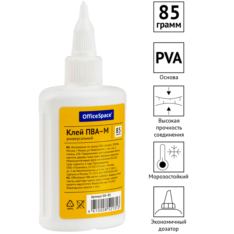 Клей ПВА OfficeSpace 85 гр, с дозатором
