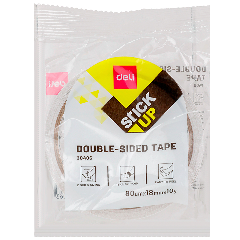 Клейкая лента двусторонняя DELI 18 мм х 10 м (полипропиленовая основа)