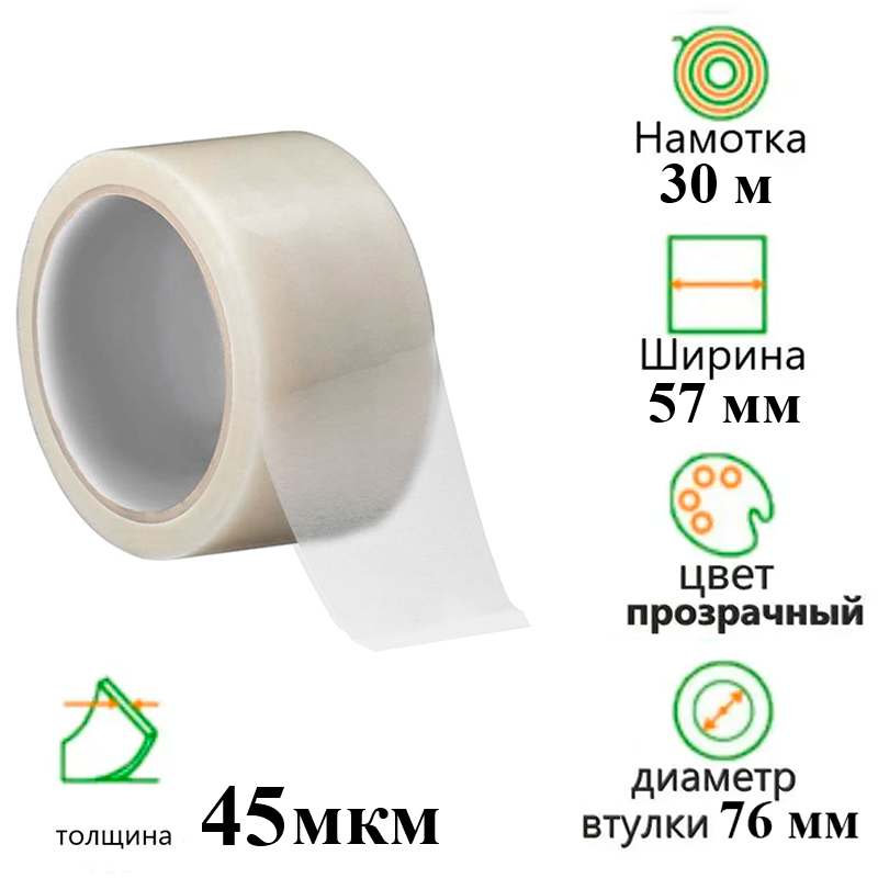 Клейкая лента упаковочная 57 мм х 30 м, прозрачная