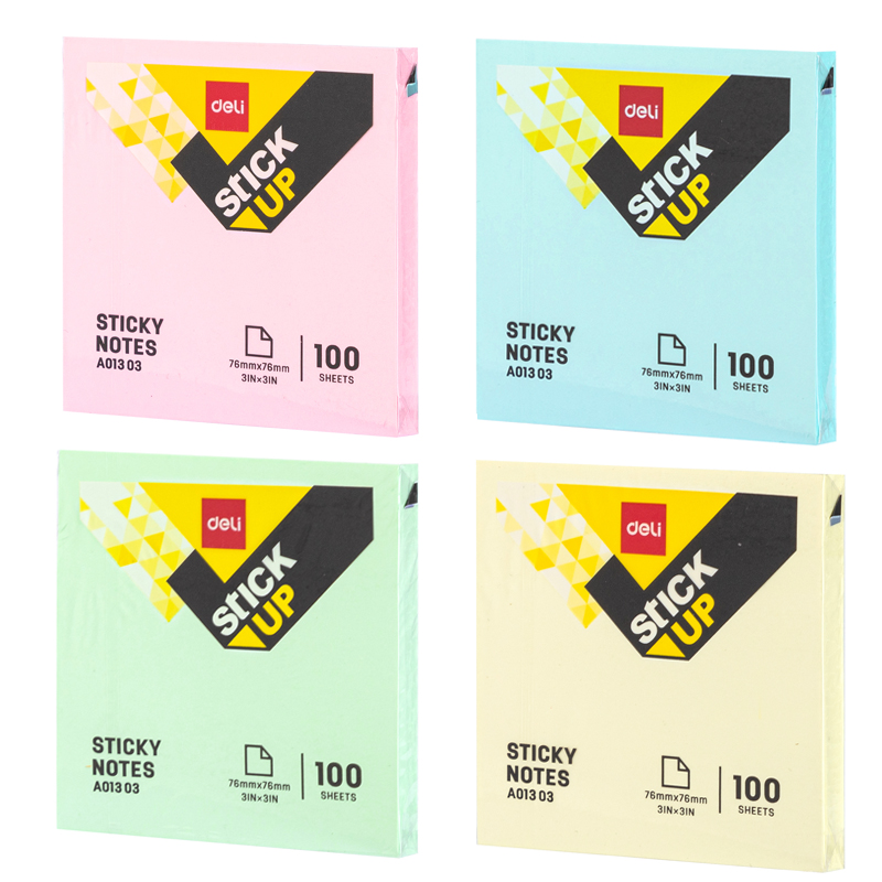 Клейкие листки DELI "Stick Up", 76 х76 мм, ассорти пастельные, 100 листов, пленка