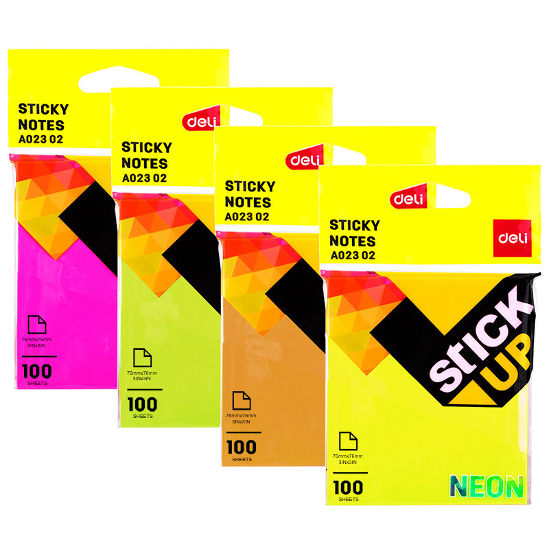 Клейкие листки DELI "Stick Up", 76х76 мм, ассорти неоновые, 100 листов, европодвес