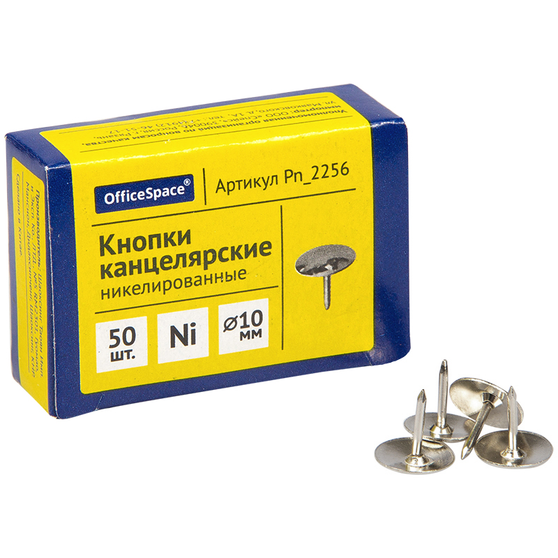 Кнопки канцелярские OfficeSpace, никелированные 10 мм, 50 штук