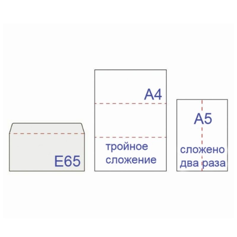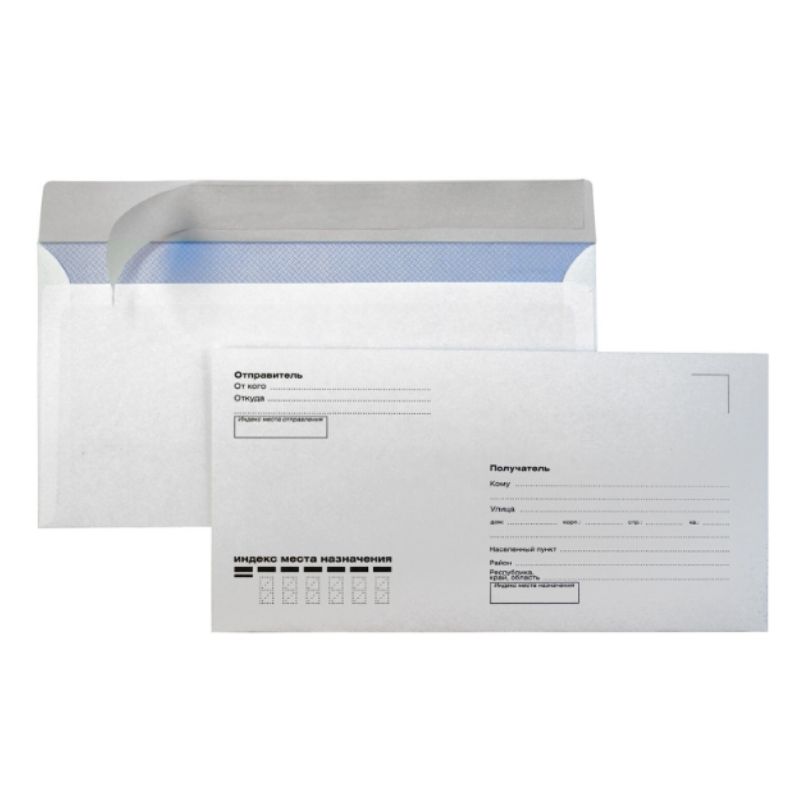 Конверт Е65 KurtStrip (110х220 мм) белый, отрывная лента, Куда-Кому, внутренняя запечатка