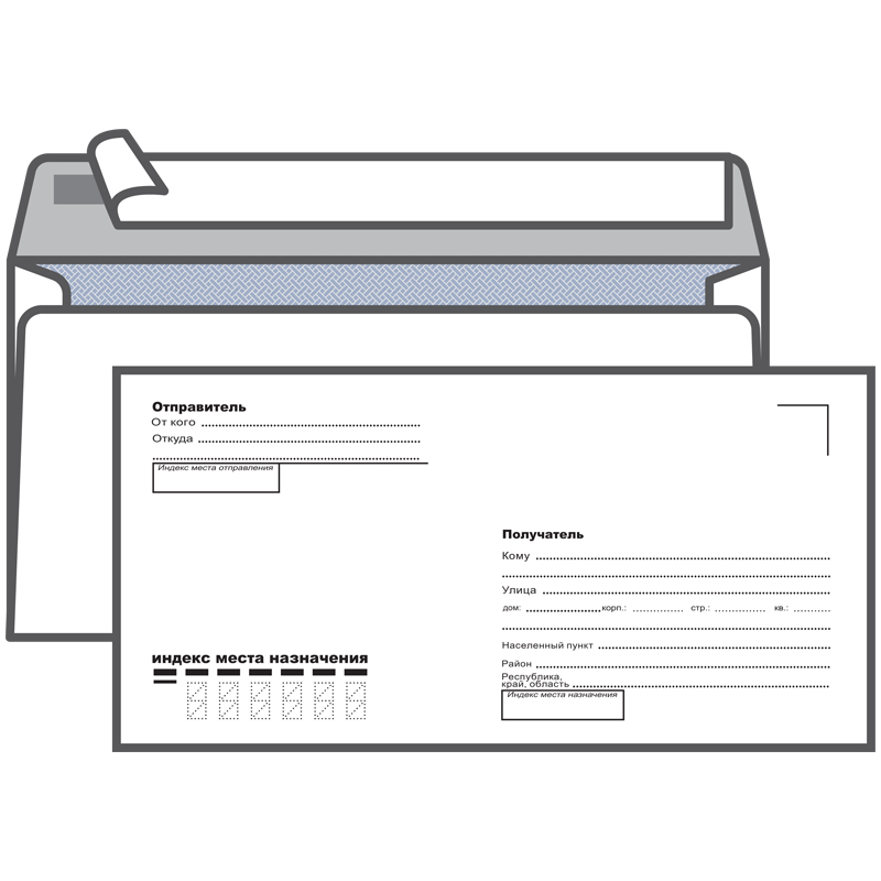 Конверт Е65 KurtStrip (110х220 мм) белый, удаляемая лента, с подсказом, внутренняя запечатка