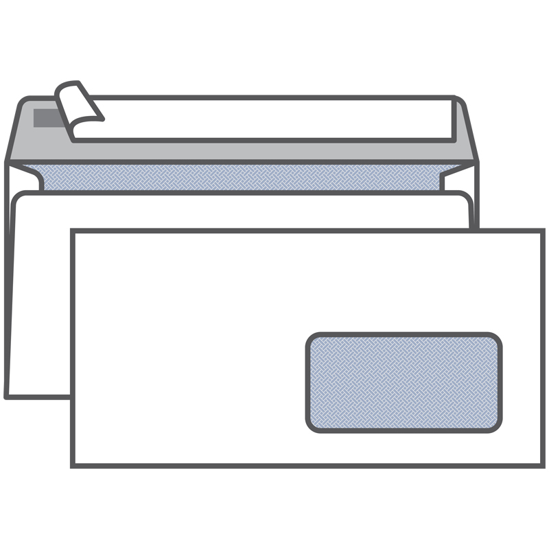 Конверт Е65 KurtStrip (110х220 мм)белый, удаляемая лента, внутренняя запечатка, правое окно 45х90 мм