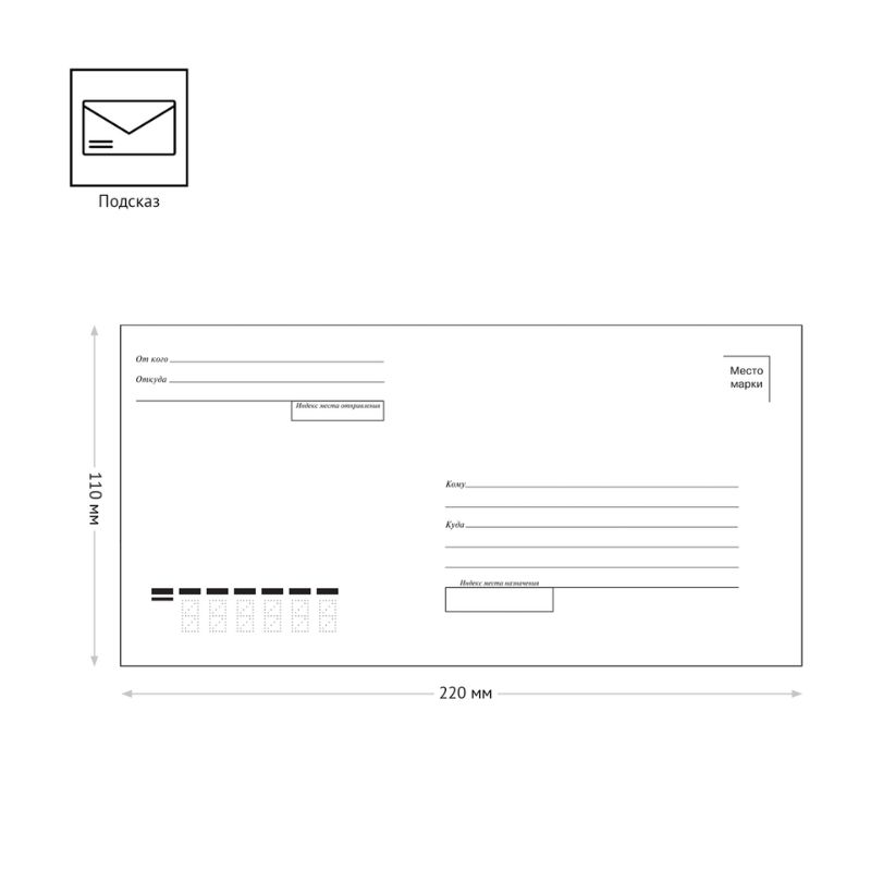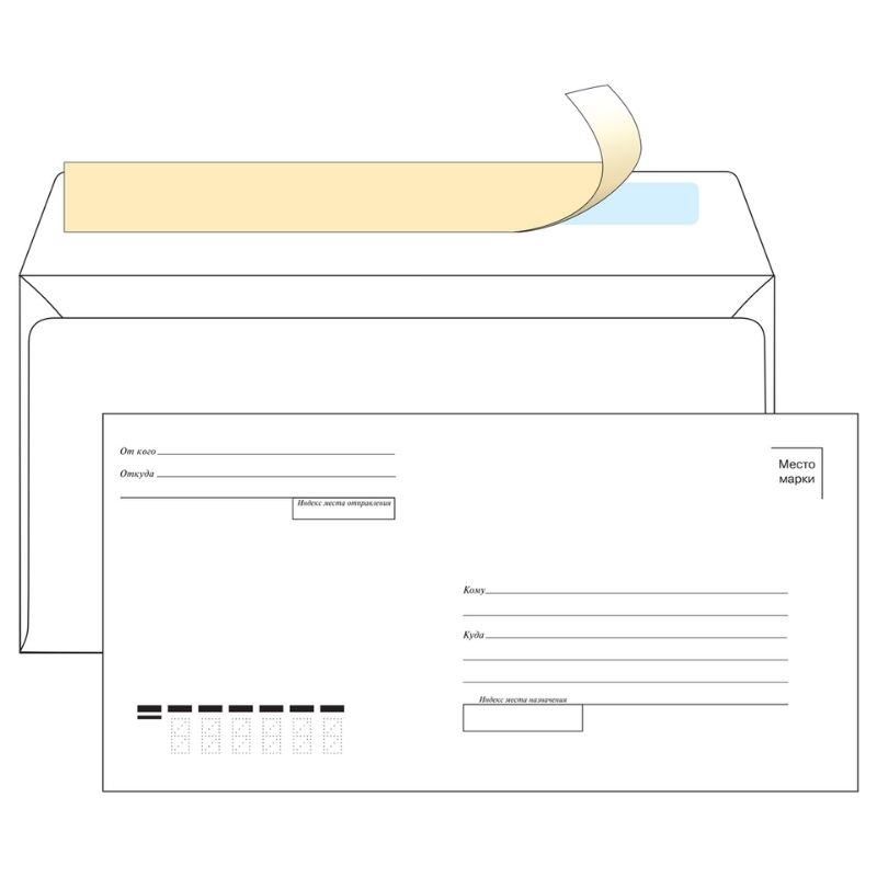 Конверт Е65 OfficeSpace (110х220 мм) белый, с подсказом, отрывная лента