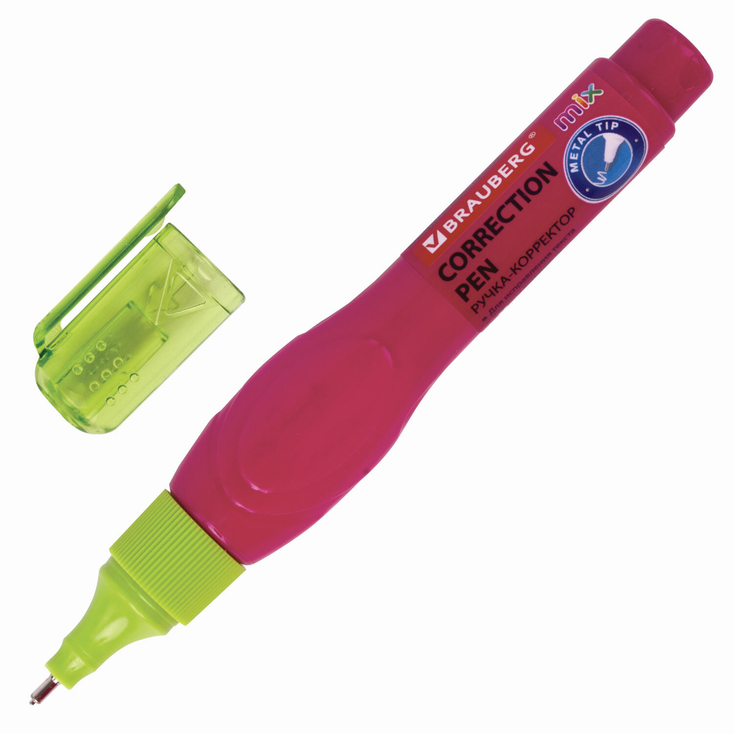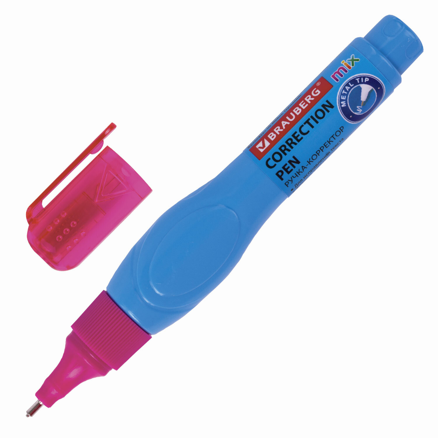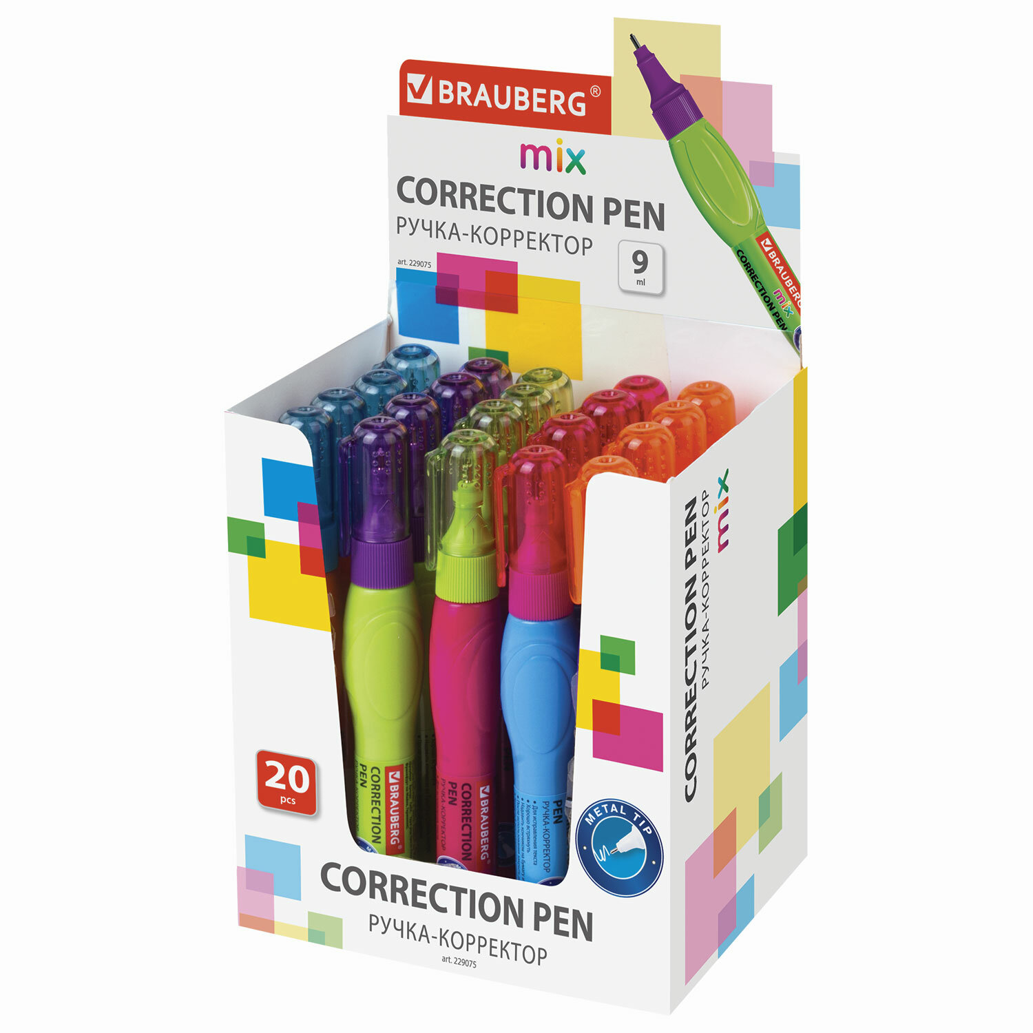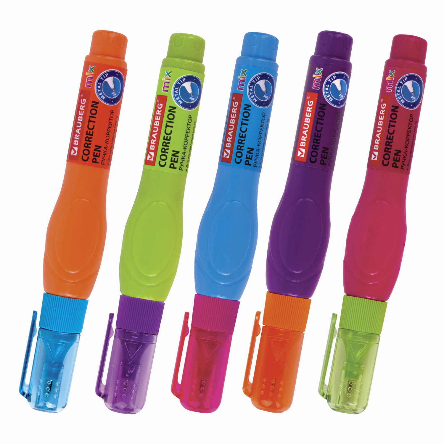 Корректирующая ручка BRAUBERG, 9 мл, металлический наконечник, ассорти