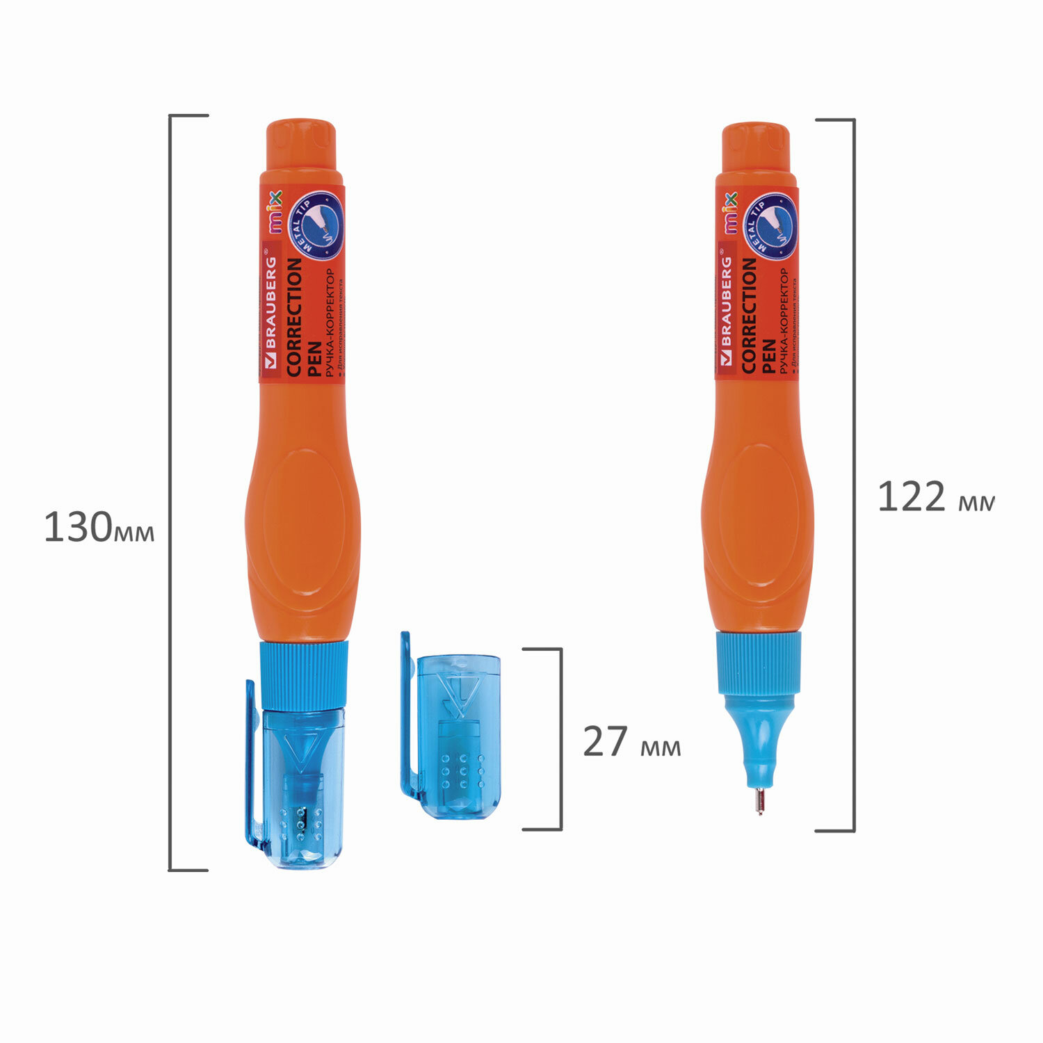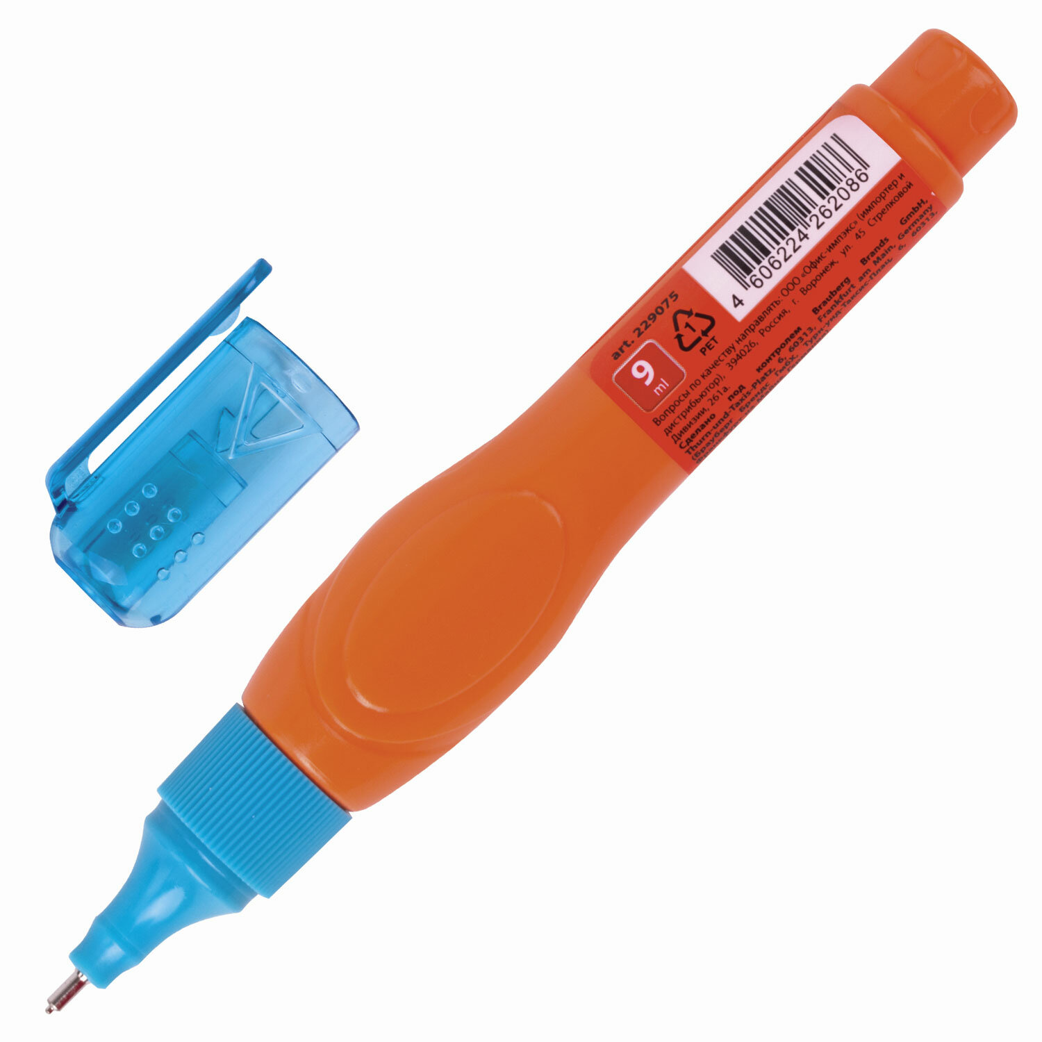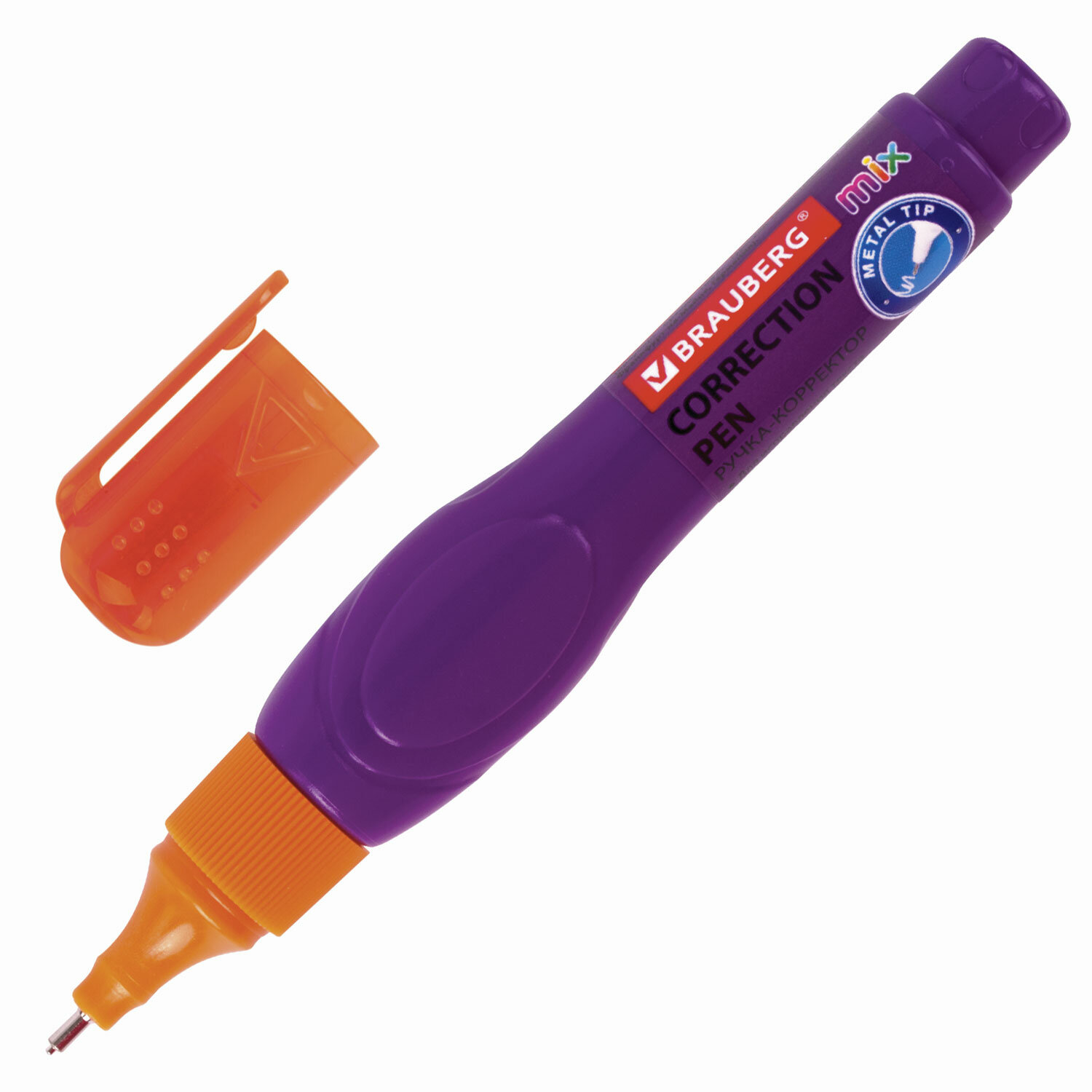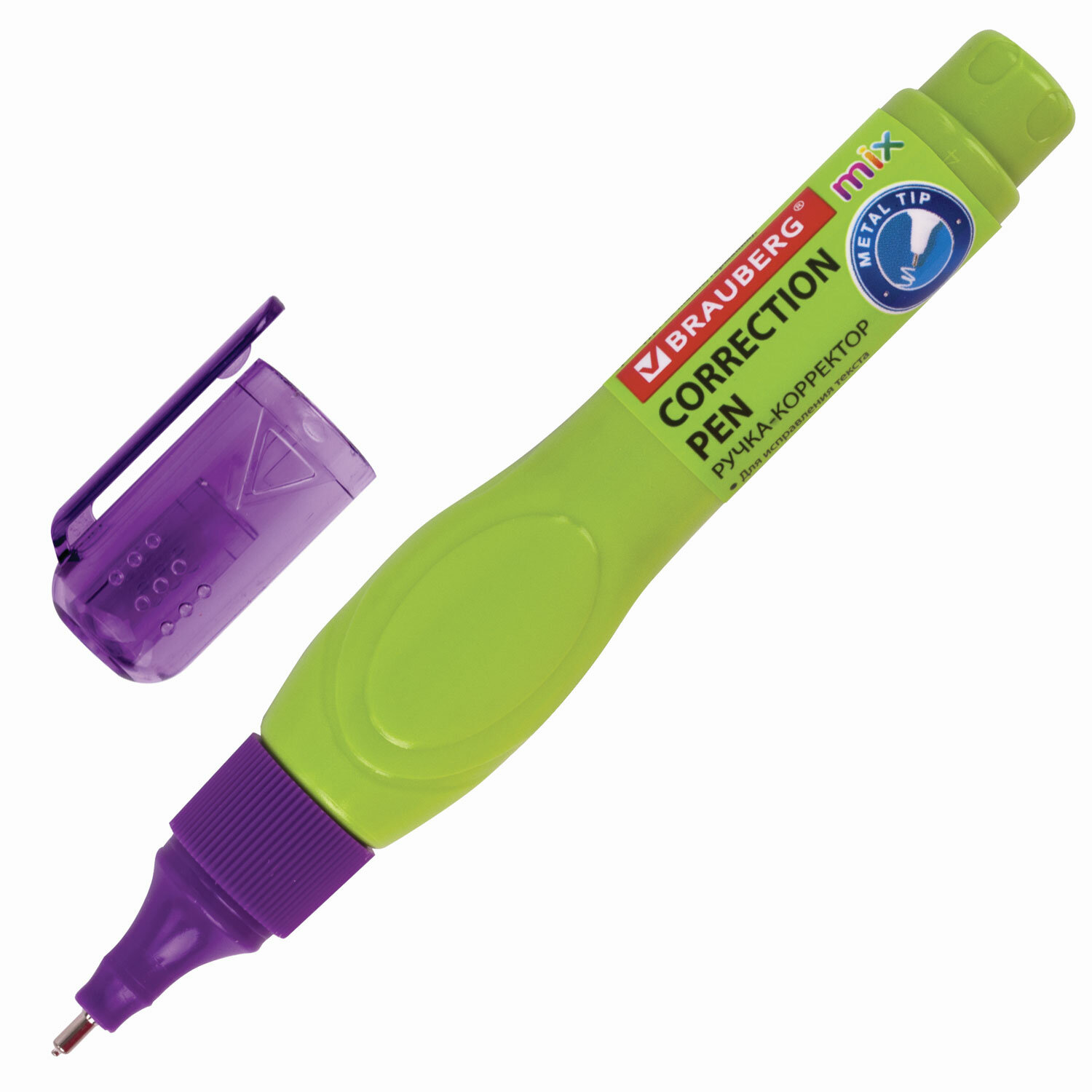 Корректирующая ручка BRAUBERG, 9 мл, металлический наконечник, ассорти