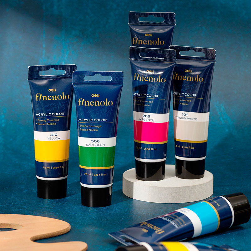 Краска акриловая DELI "Finenolo" художественная, глянцевая, 75 мл., зеленая, туба