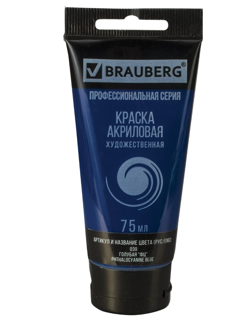 Краска акриловая художественная BRAUBERG ART CLASSIC, туба 75мл, ГОЛУБАЯ "ФЦ", 191096
