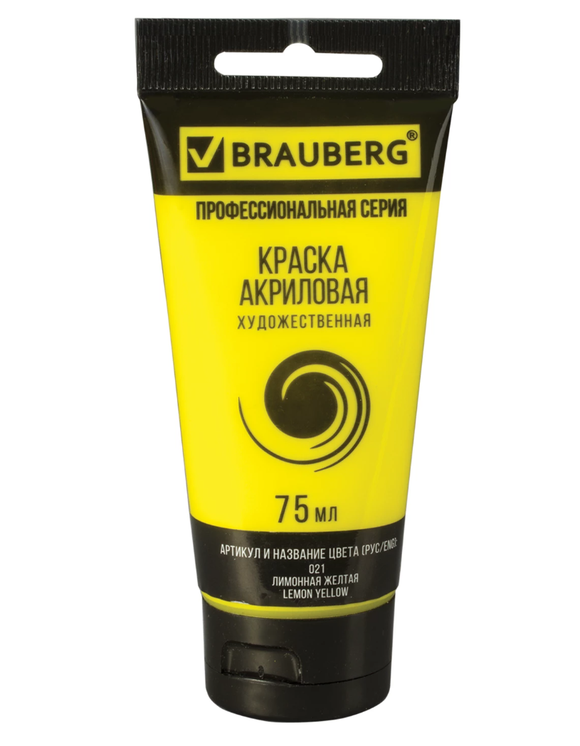 Краска акриловая художественная BRAUBERG ART CLASSIC, туба 75мл, ЛИМОННАЯ ЖЕЛТАЯ, 191074