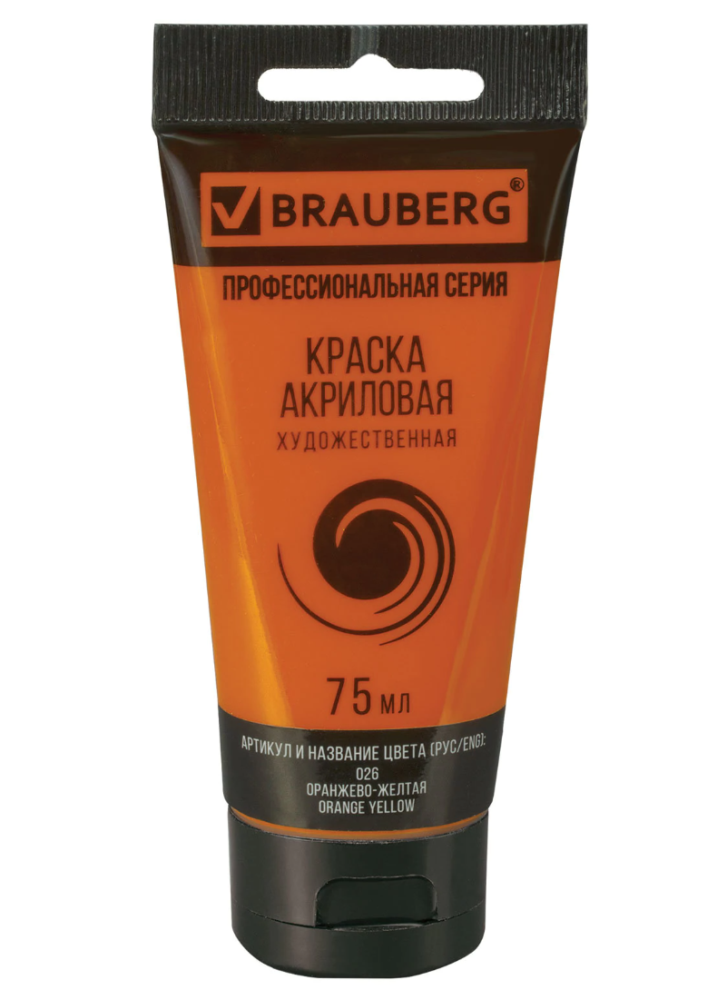 Краска акриловая художественная BRAUBERG ART CLASSIC, туба 75мл, ОРАНЖЕВО-ЖЕЛТАЯ, 191079