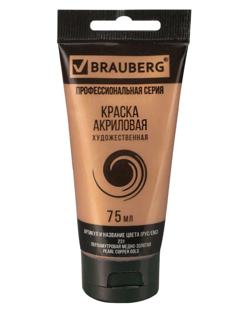 Краска акриловая художественная BRAUBERG ART CLASSIC, туба 75мл, ПЕРЛАМУТРОВАЯ МЕДНО-ЗОЛОТАЯ, 191120