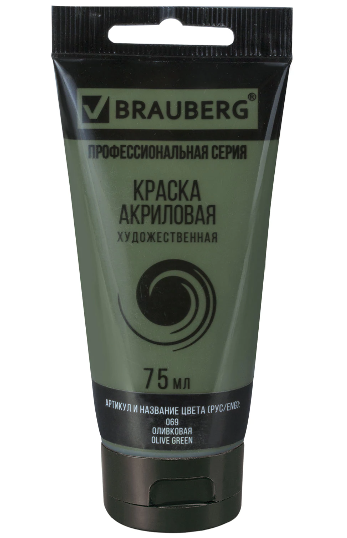 Краска акриловая художественная BRAUBERG туба 75мл, профессиональная серия, оливковая