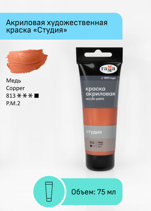 Краска акриловая художественная Гамма "Студия", 75мл, пластиковая туба, медь