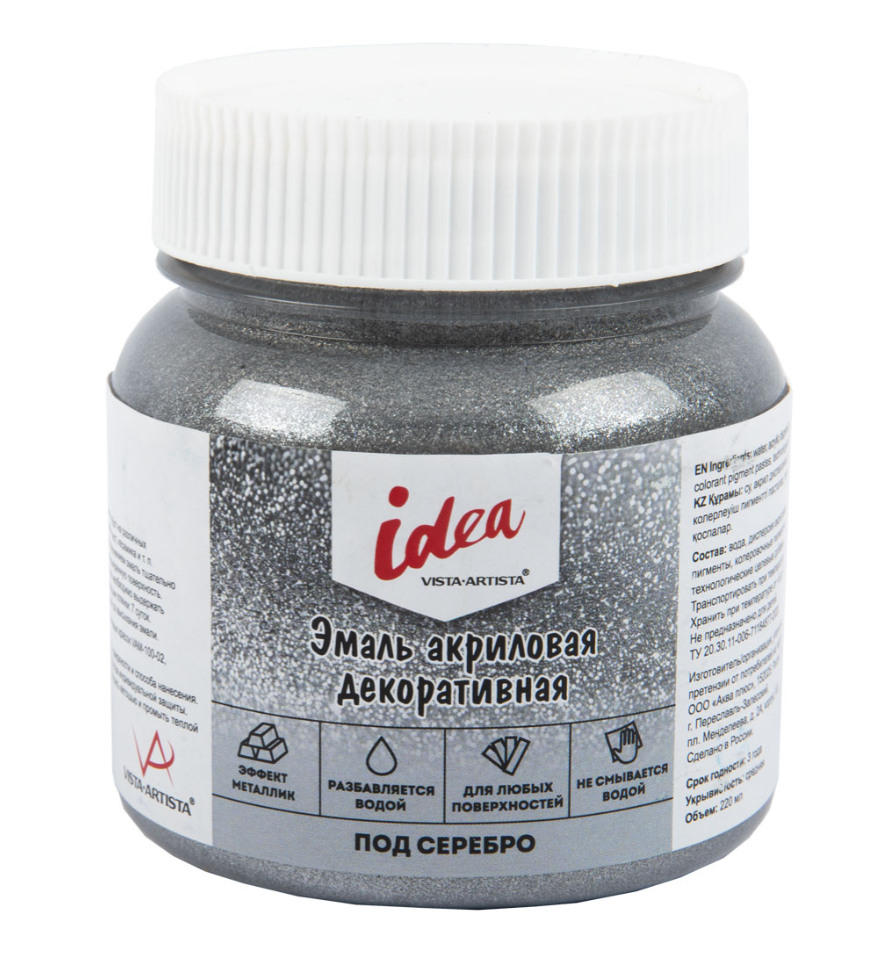 Краска акриловая "VISTA-ARTISTA" idea Эмаль акриловая декоративная VIAE-220 220 мл 002 под серебро