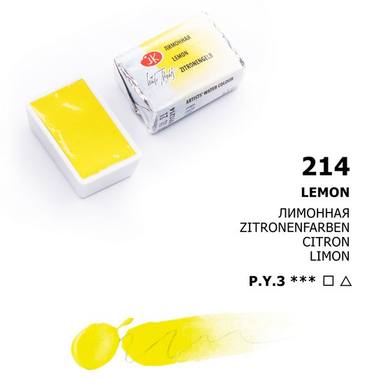 Краска акварель художественная "Белые ночи" лимонная цв. №214 кювета 2,5мл