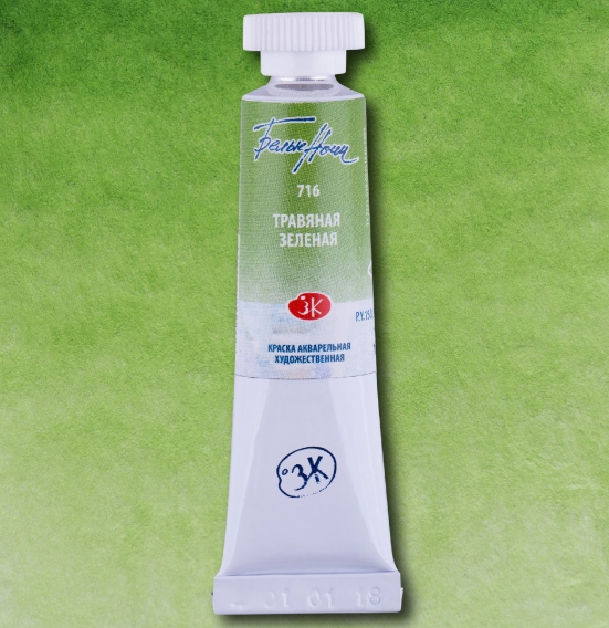 Краска акварельная БЕЛЫЕ НОЧИ цв.№716 травяная зеленая туба 10мл