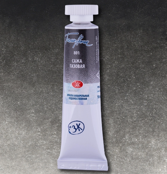 Краска акварельная БЕЛЫЕ НОЧИ цв.№801 сажа газовая туба 10мл