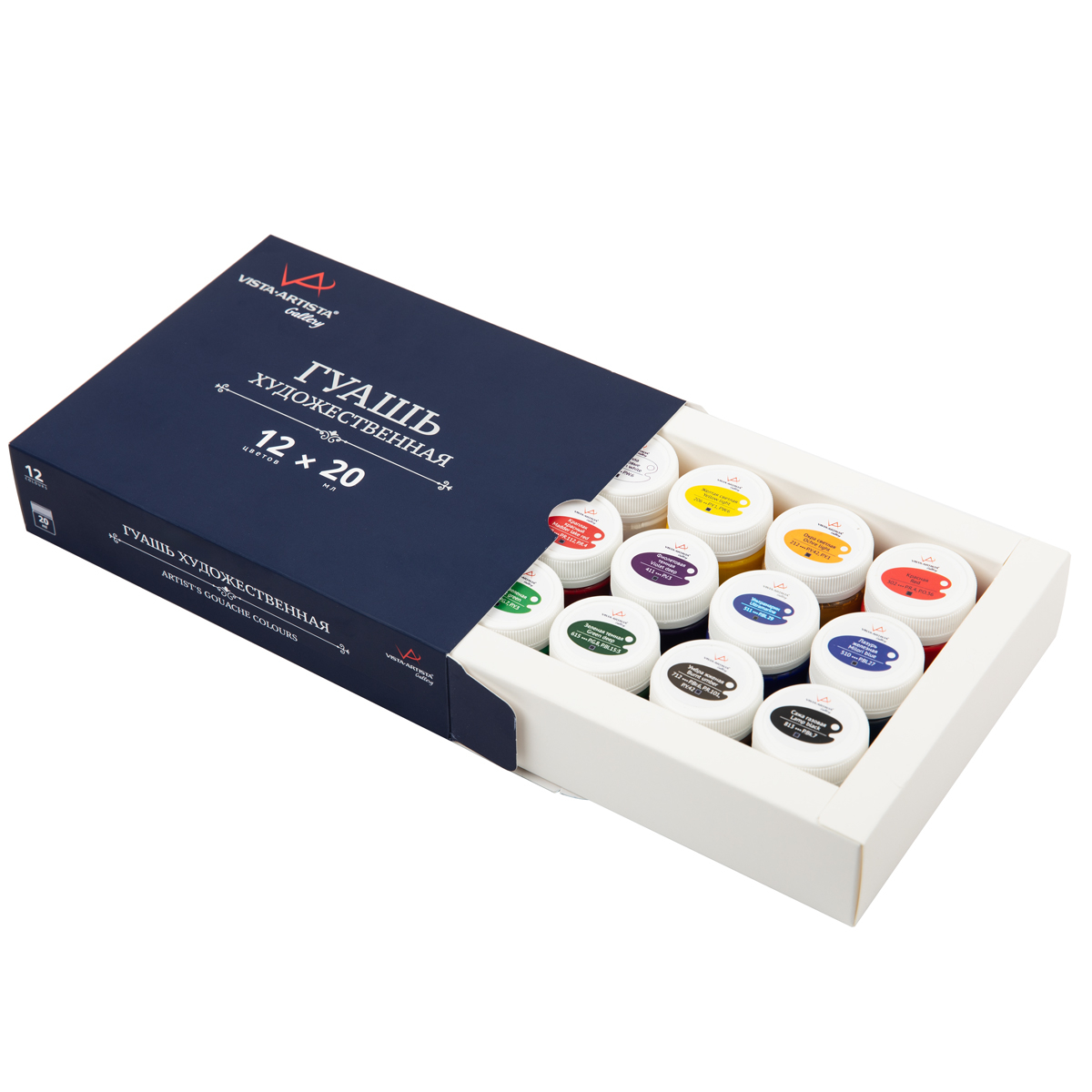 Краска гуашь"VISTA-ARTISTA" "Gallery" набор художественный в баночке VAGS-1220 12 цв. х 20 мл .