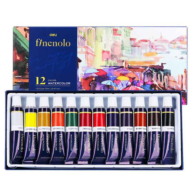 Краски акварельные DELI "Finenolo", художественные, 12 цвета в тубах по 12 мл.