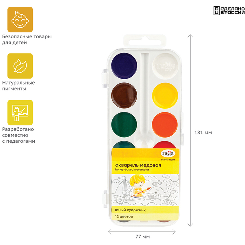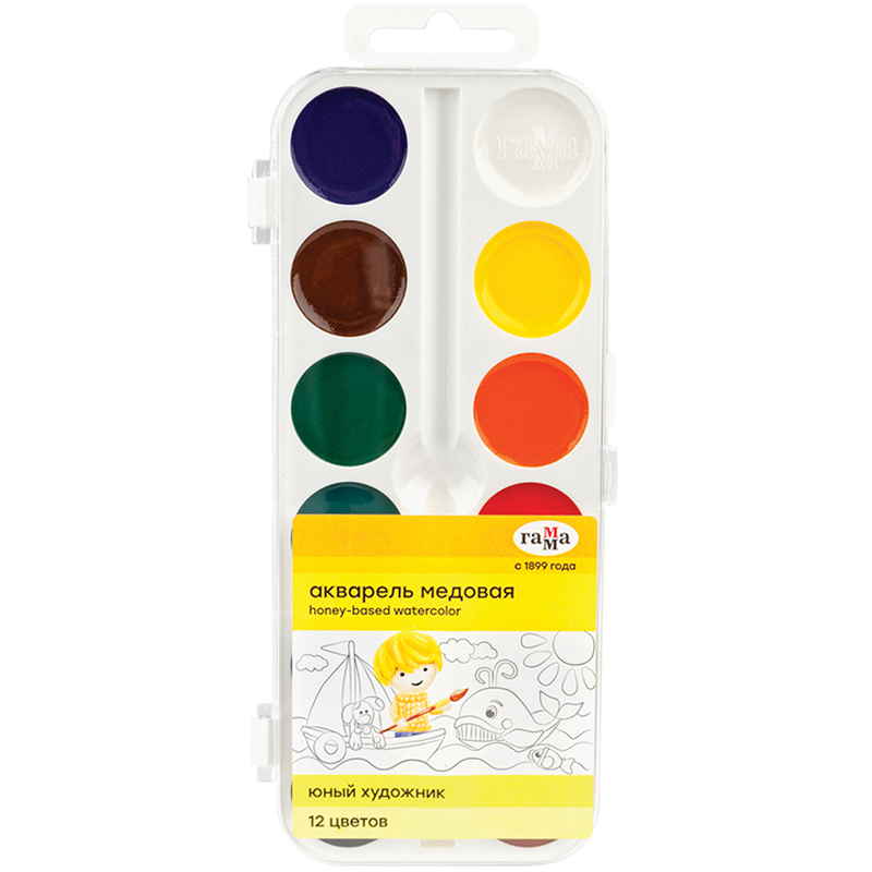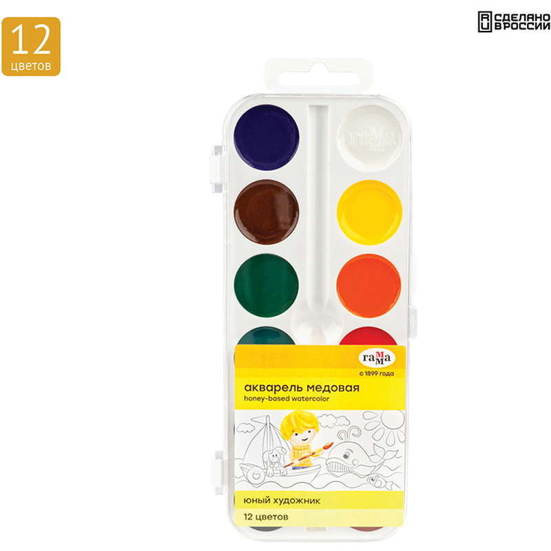 Краски акварельные медовые Гамма "Юный художник", без кисти, 12 цветов