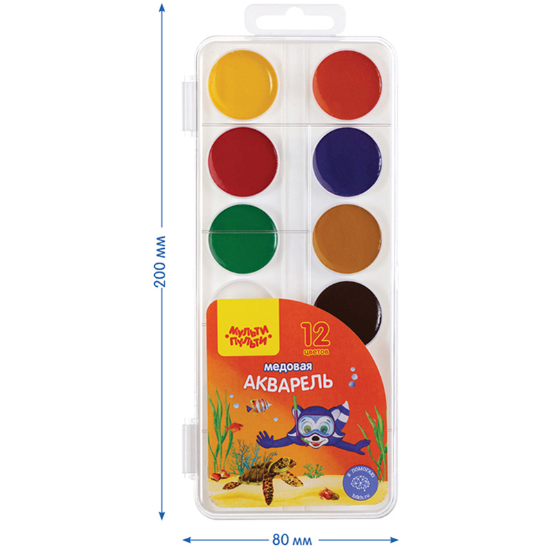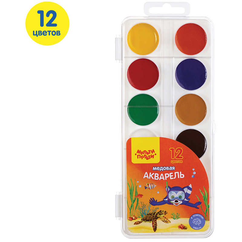 Краски акварельные медовые Мульти-Пульти "Енот в Красном море", без кисти, 12 цветов