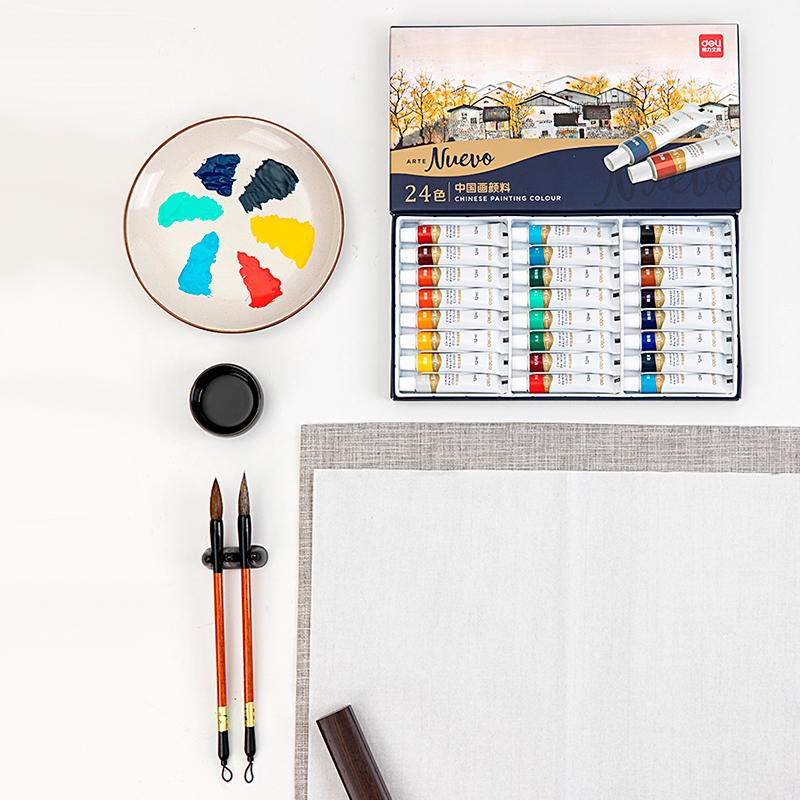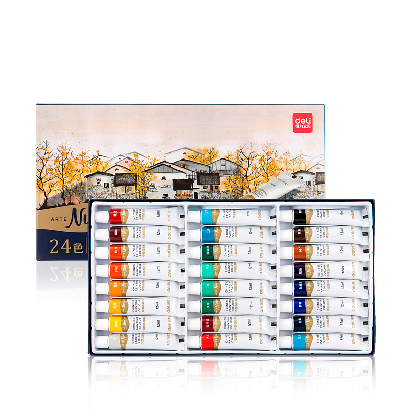 Краски пигментные DELI "Nuevo" для живописи, 24 цвета по 12 мл., картон