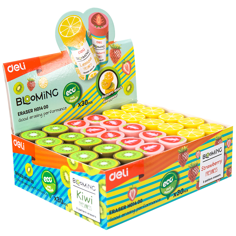 Ластик DELI "Blooming", цилиндрический, ассорти (43х22х22 мм)