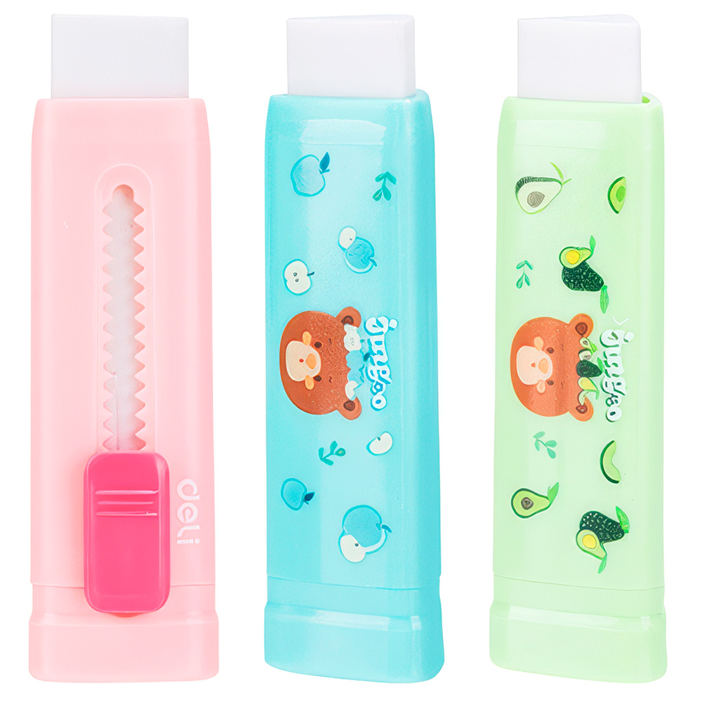 Ластик DELI "Jungoo", прямоугольный 55х18х16 мм в пластиковом выдвижном корпусе