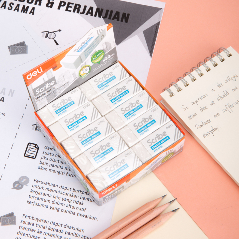 Ластик DELI "Scribe", прямоугольный, белый (42х17х10 мм)