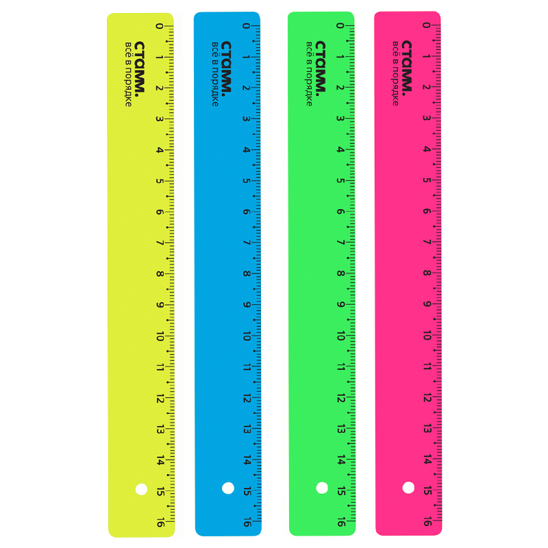 Линейка СТАММ "Neon" 16 см, неоновые цвета