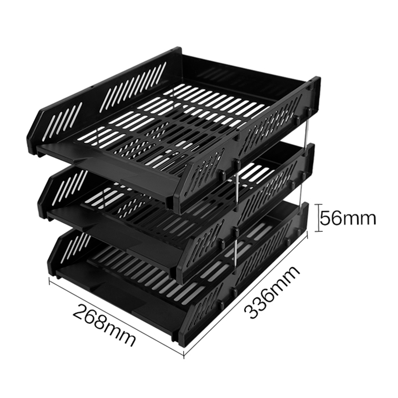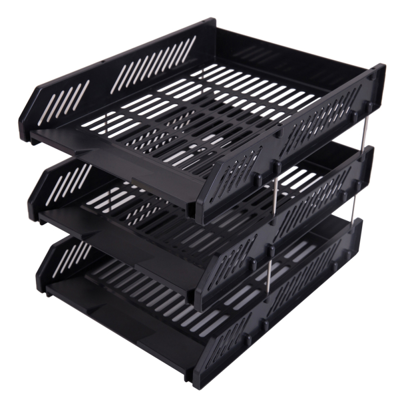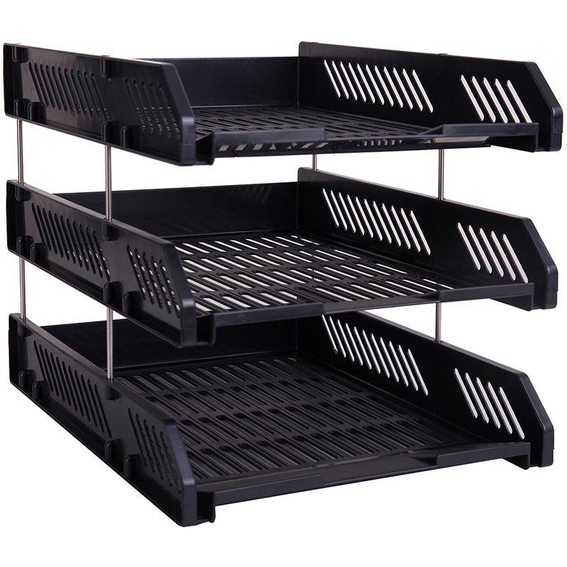 Лоток горизонтальный DELI, 3-х рядный, пластик, черный