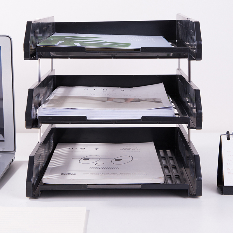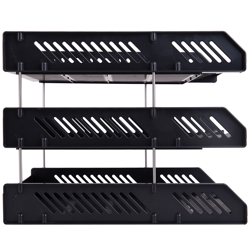 Лоток горизонтальный DELI, 3-х рядный, пластик, черный
