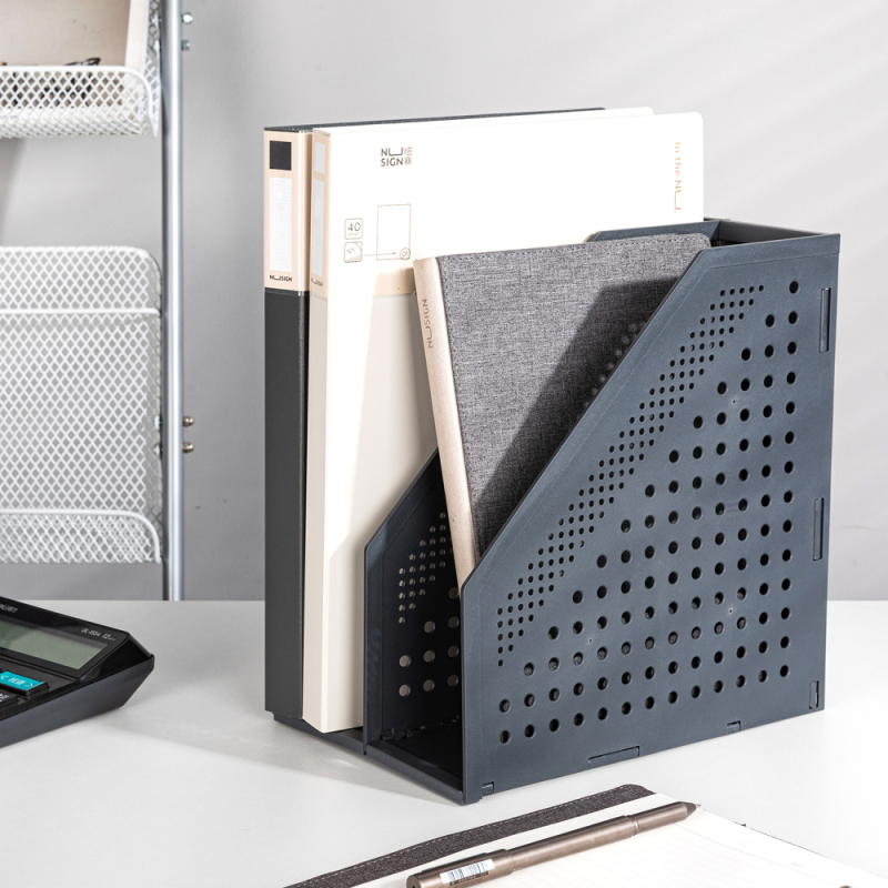 Лоток вертикальный DELI, 2 отделения, складной, темно-серый