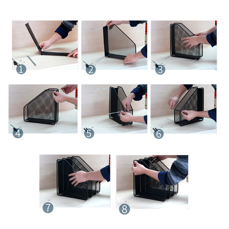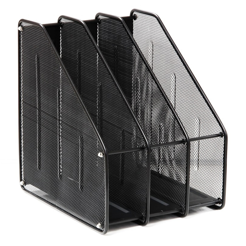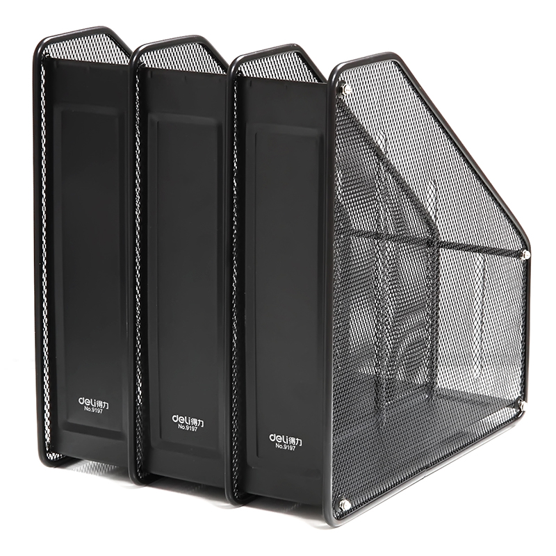 Лоток вертикальный DELI, 3 отделения, металлический, черный