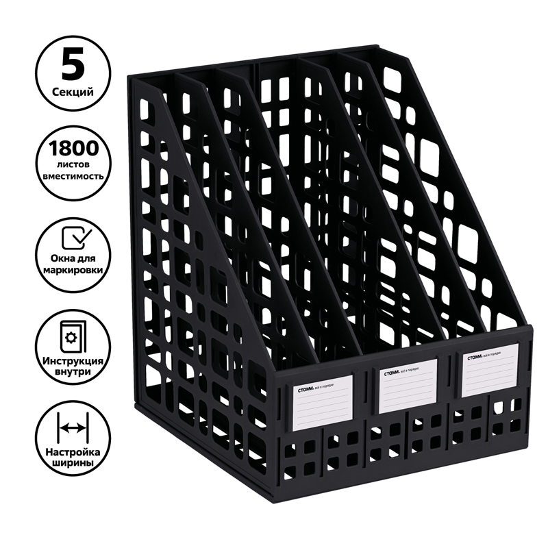 Лоток вертикальный СТАММ, 5 отделений, черный