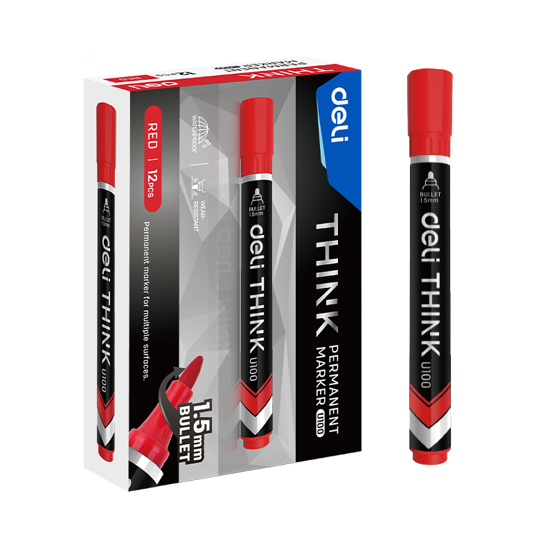 Маркер перманентный DELI "U100" 1,5 мм, красный