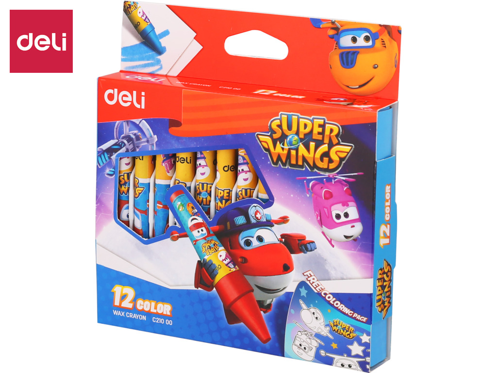 Мелки восковые Deli "Super Wings", пастельные, 12 цветов, картон