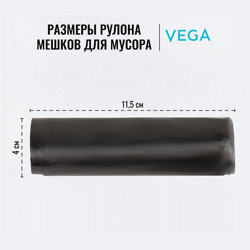 Мешки для мусора "Vega", 48х55 см, 30 литров, 5 мкм, 20 шт/рул., черные