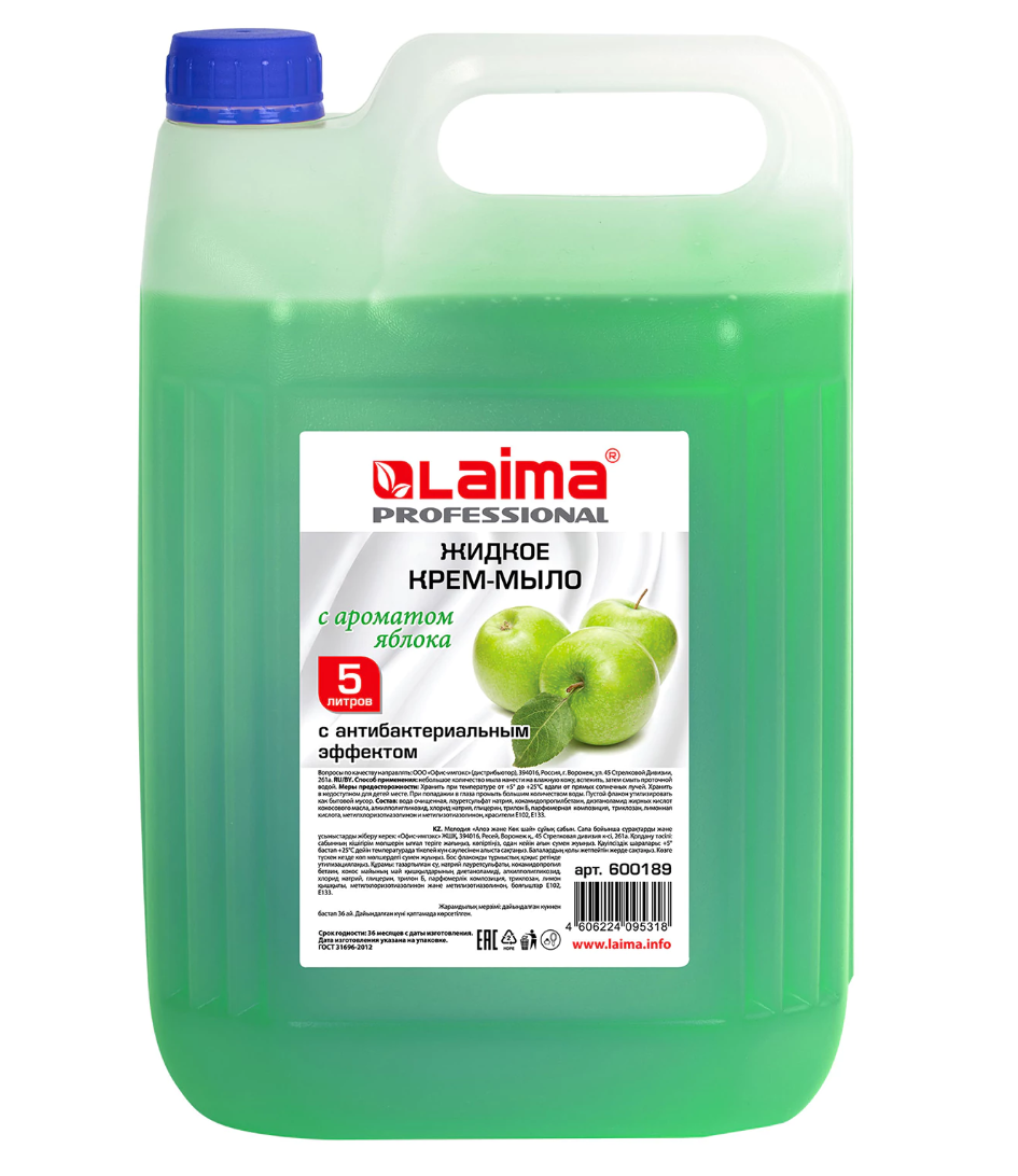 Мыло-крем жидкое 5л ЛАЙМА PROFESSIONAL "Яблоко", с антибактериальным эффектом, 600189