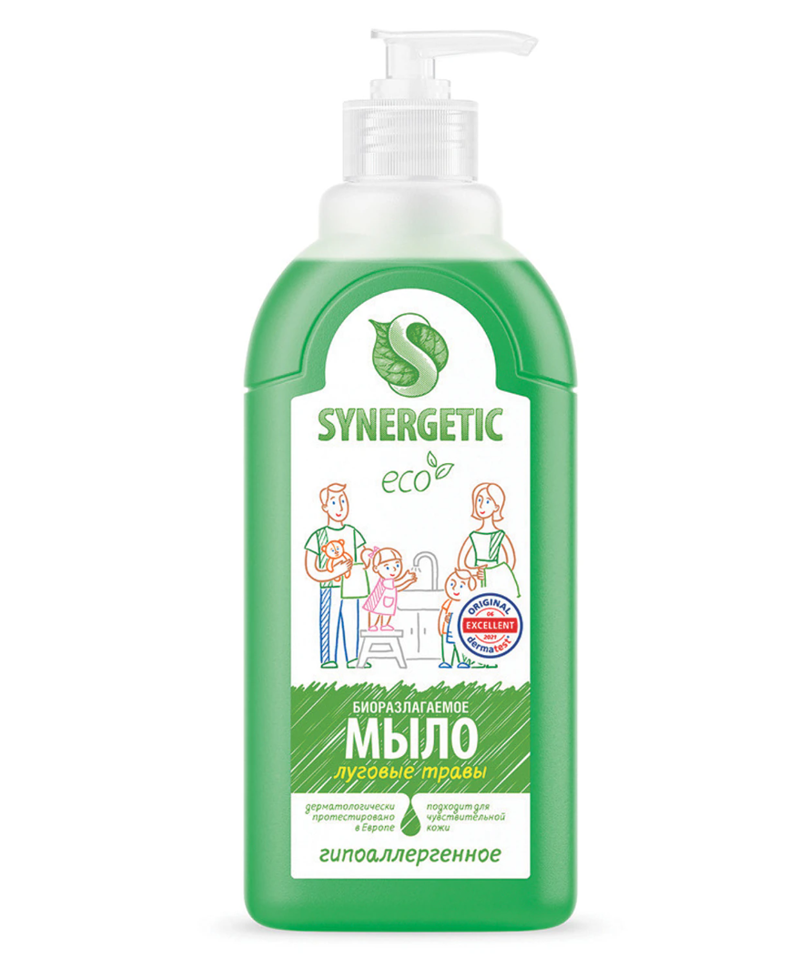 Мыло жидкое 500мл SYNERGETIC "Луговые травы", гипоаллергенное, биоразлагаемое, дозатор, ш/к 38976