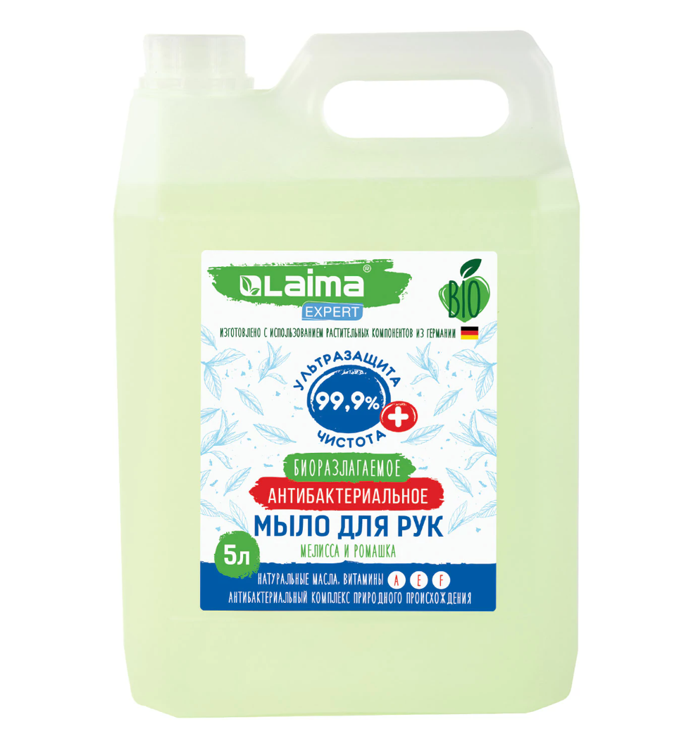 Мыло жидкое антибактериальное биоразлагаемое 5л LAIMA EXPERT "Мелисса и ромашка", 607764
