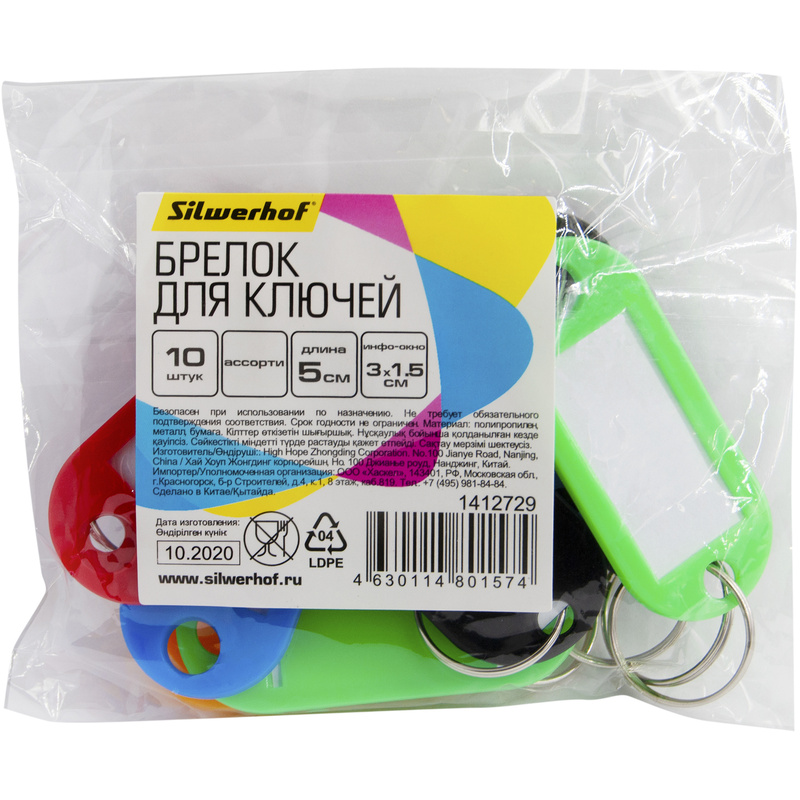 Набор брелков Silwerhof для ключей, 50 мм., 10 шт/упак, ассорти