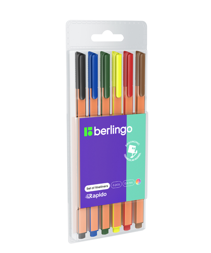 Набор капиллярных ручек Berlingo "Rapido" 06цв., 0,4мм, трехгран., европодвес