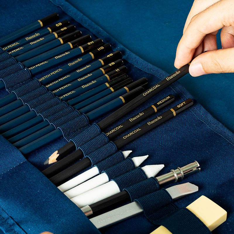 Набор карандашей для скетчинга DELI "Finenolo", 27 предметов в пенале-свитке