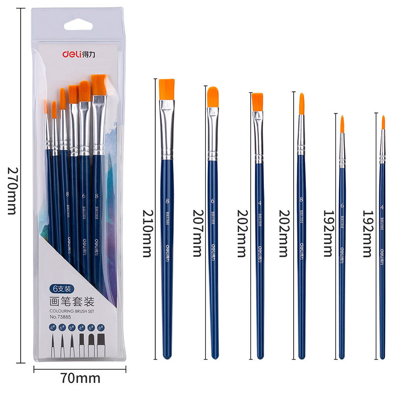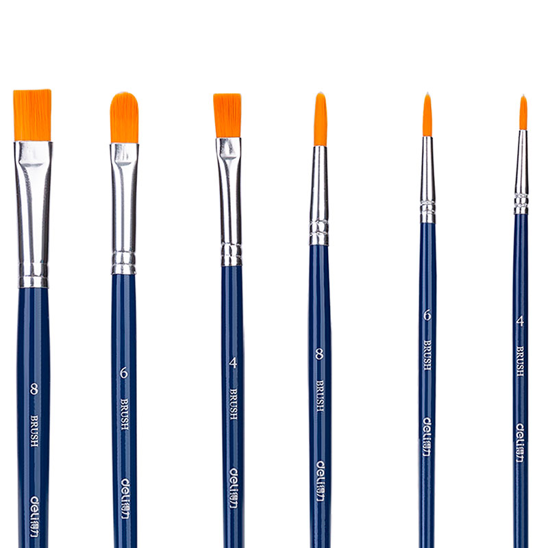 Набор кистей DELI для акварели и гуаши, нейлон, 6 штук в уп., №8, 6, 4