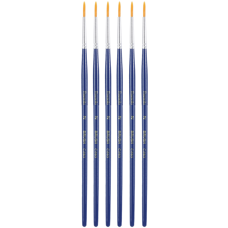 Набор кистей DELI "Finenolo", №2, круглая, березовая ручка 20 см, 6 штуки в уп., синтетика